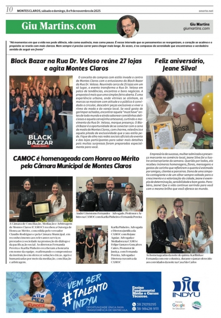 O conceito de compras com estilo invade o centro de Montes Claros com o entusiasmo do Black Bazar da Rua Dr. Veloso. Reunindo cerca de 25 lojas em um só lugar, o evento transforma a Rua Dr. Veloso em palco de tendências, encontros e bons negócios. A proposta é mais que uma simples feira aberta. É uma experiência urbana, onde vitrines se alinham, as marcas se mostram com atitude e o público é convidado a circular, descobrir peças exclusivas e viver o ritmo da moda e do varejo local. Se você gosta de garimpar achados, encontrar aquele “must have” antes de todo mundo e ainda saborear comidinhas deliciosas e aquela cervejinha artesanal, curtindo o movimento da Rua Dr. Veloso, marque presença. O Black Bazar é a oportunidade de se conectar com a cena de moda de Montes Claros, com charme, relevância e aquela pitada de exclusividade que o seu estilo pede. Fique de olho nas redes sociais oficiais do evento e das lojas participantes para saber mais detalhes pois muitas surpresas foram preparadas especialmente para você.