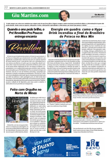 Durante os três dias decisivos do Campeonato Brasileiro de Peteca realizado entre 20 e 22 de novembro no Max Min Clube, em Montes Claros, o Hype Drink - Herbalife foi presença marcante, trazendo sua energia funcional para reforçar o clima competitivo e vibrante do evento. O Max Min Clube, com suas inúmeras quadras (sendo onze cobertas) dedicadas à peteca, foi o palco ideal para a união entre performance esportiva e o fôlego que só uma bebida funcional pode oferecer. A estrutura do clube, reconhecida nacionalmente, elevou a experiência para atletas e espectadores. A proposta do Hype Drink, com ingredientes como cafeína, taurina e vitaminas do complexo B e C, pensada para aumentar a disposição, melhorar a recuperação e reduzir a fadiga, dialogou perfeitamente com a exigência física do torneio. Presente em ponto estratégico do evento, a marca reforçou seu posicionamento esportivo, atuando não apenas como parceira, mas como combustível para os atletas nas trocas intensas de peteca e nas decisões das finais. Ao final, ficou claro que a energia da Hype Drink não só embalou o espírito esportivo, mas também transformou os momentos de tensão em celebração, consolidando uma parceria que fechou com chave de ouro esse grande campeonato nacional.