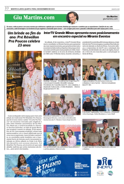 ComentarNo sábado, 29 de novembro, a InterTV Grande Minas reuniu convidados no Mirante Eventos para apresentar seu novo reposicionamento, que aproxima ainda mais o ecossistema Globo da força hiperlocal das praças mineiras e abre caminho para novos projetos em 2026. O evento também celebrou os 45 anos da emissora, fundada em 1980 como TV Montes Claros. Durante o encontro, o presidente Fernando Aboudib Camargo destacou a trajetória da InterTV e homenageou o saudoso Elias Siufi, pioneiro da televisão no Norte de Minas. O encontro reforçou o compromisso da InterTV com a valorização das histórias, da identidade e da cultura da região, marcando o início de uma nova fase para a comunicação no Norte de Minas.