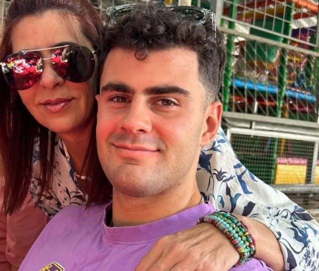 Christian com o irmão mais novo Erik Oliveira Sovik e seus pais Daniela e Sovik em um jogo em Miami