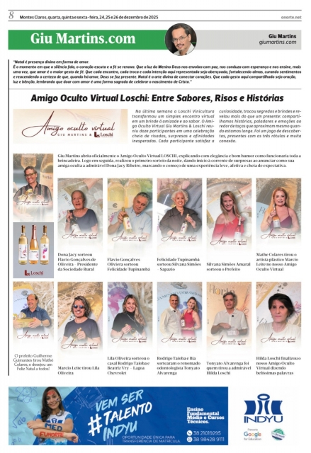 Em tempos em que a pressa muitas vezes substitui o encontro, a Vinícola Loschi, em parceria com o colunista Giu Martins, apresenta um projeto que resgata o valor da conexão, do cuidado e da surpresa. Nasce assim o Amigo Oculto Loschi. Brindes Que Conectam, uma experiência virtual criada para celebrar pessoas, histórias e o verdadeiro espírito das festas de fim de ano. A dinâmica é simples, mas cheia de significado. Cada participante recebe, por vídeo, uma mensagem do amigo oculto que o sorteou. Antes mesmo da revelação, vêm as palavras, a emoção e a intenção. Em seguida, o presente se revela, um vinho Loschi, símbolo do brinde, da partilha e dos encontros que fazem sentido. Tudo acontece em uma sequência delicada de registros em vídeo. A reação, o agradecimento, o brinde e a escolha do próximo amigo formam uma corrente de afeto que atravessa telas, mas chega com verdade ao coração. Ao final, mensagens de Natal e de Ano Novo selam o momento, reforçando o clima de celebração e esperança. Mais do que um amigo oculto, o projeto propõe uma experiência. Um convite para desacelerar, olhar com atenção e brindar àquilo que realmente importa. Porque quando existe intenção, o presente ganha alma. E quando o brinde é sincero, ele conecta.